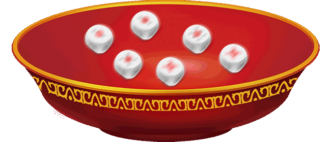 博出的结果有五个骰子点数相同者,次于 “五红”。 大小排序为:XXXXX+Y (其中X:6>5>3>2>1,Y:6>5>4>3>2>1,且X不等于Y), 如444446>555555>222224>222223。 |